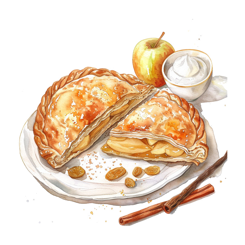 Apple and Custard Pasty – a sweet twist on a Cornish classic that’s as comforting as a fireside chat. Tucked inside that familiar buttery crust lies spiced apples, with just the right balance of sweet and tart and kissed by a sprinkle of cinnamon, nutmeg, and a hint of clove. Sprinkled with plump raisins that have soaked up all those lovely spices, adding little bursts of sweetness in every bite. And just when you think it couldn’t get any better, there’s a luxurious swirl of rich and creamy vanilla bean custard.