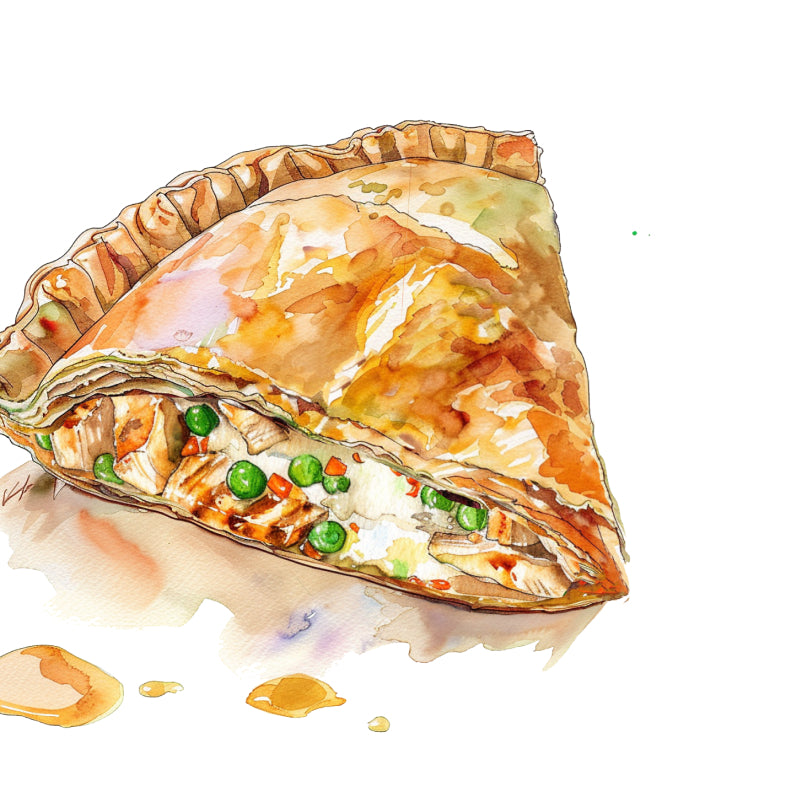 Ground Beef, Green Peas, Carrots, Cubed Potatoes & Onions in a Buttery Shortcrust Pastry