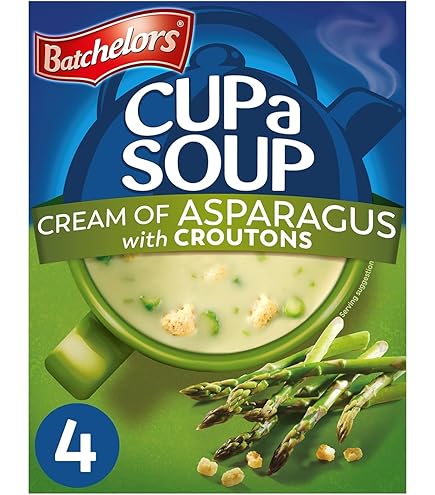 Batchelors Cup a Soup Asparagus is a rich and creamy soup, perfect if you don’t have much time for lunch. Simply enter the sachet’s contents into a mug and add hot water. The distinctive asparagus flavour creates an enticing aroma, one which no one in your family will be able to resist!