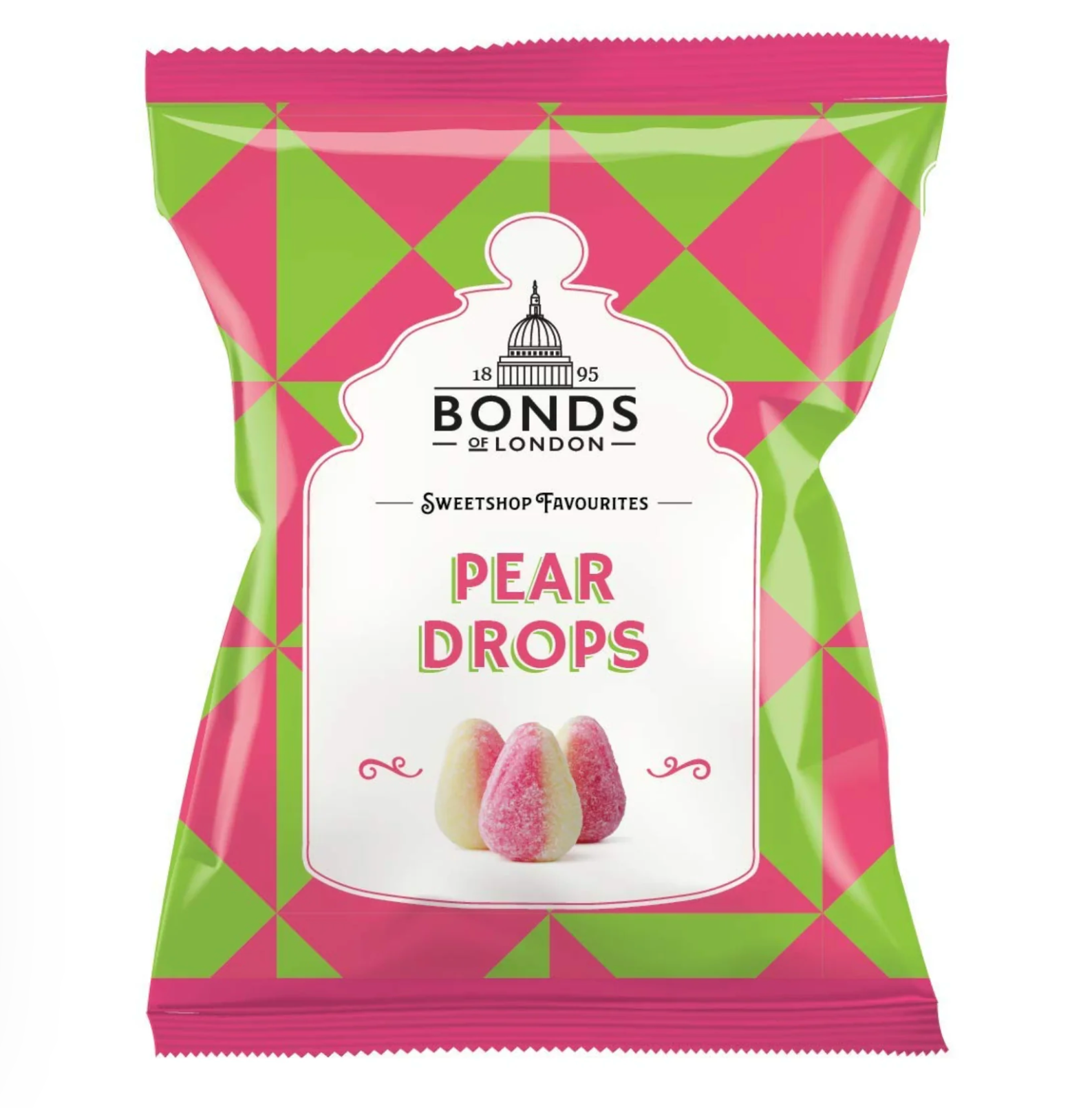 Pear Drops are one of our most popular boiled sweets, everyone loves the sweet pear flavour of these retro boiled sweets! The Bonds Sweetshop Favourites Sweet Bags are an established and successful bag range of classic British favourites. Their brightly coloured share bag range is sure to transport you back to that kid in a sweetshop moment.