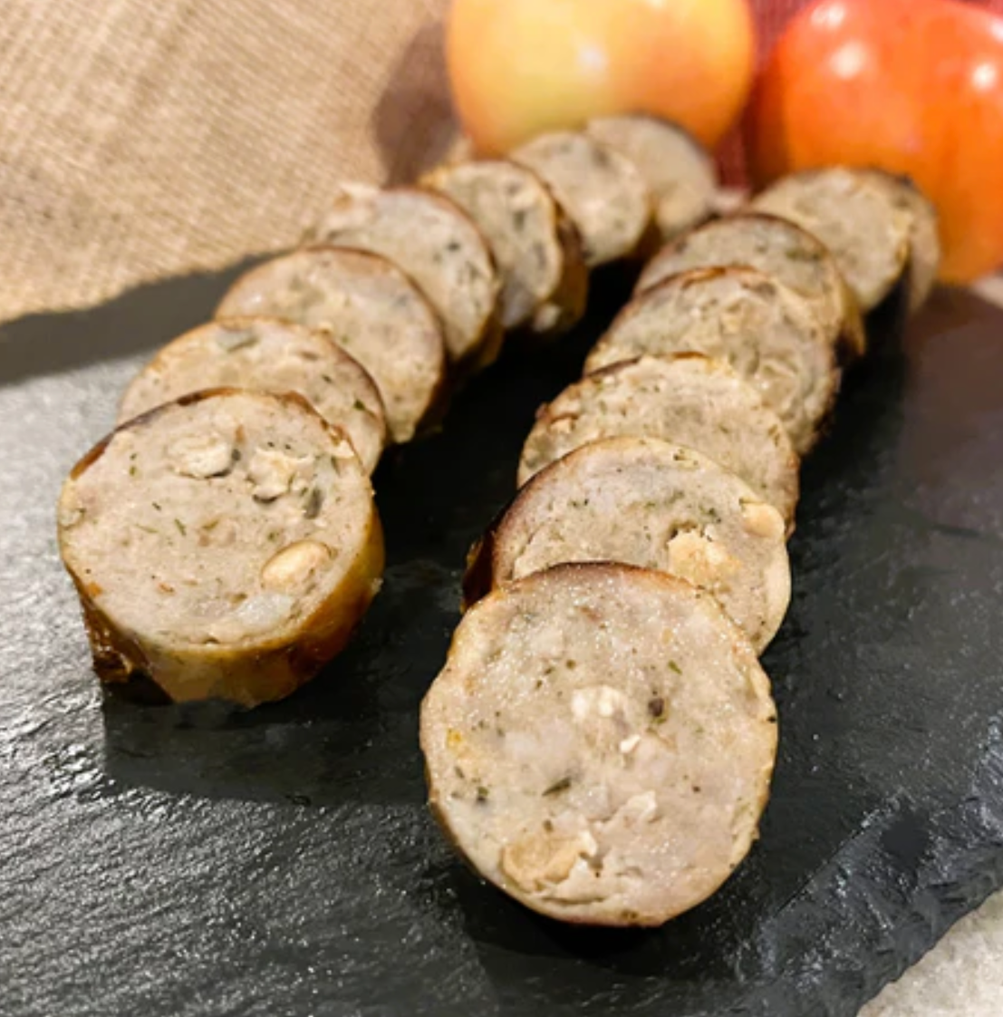 Ingredients: Pork, water, apples, breadcrumbs (wheat flour, salt, leavening), spices, salt, parsley, in natural pork casings.