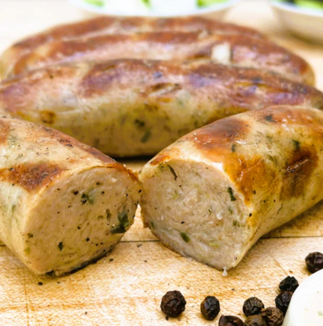 Ingredients: Pork, water, breadcrumbs (wheat flour, salt, leavening), leeks, spices, salt, in natural pork casings.