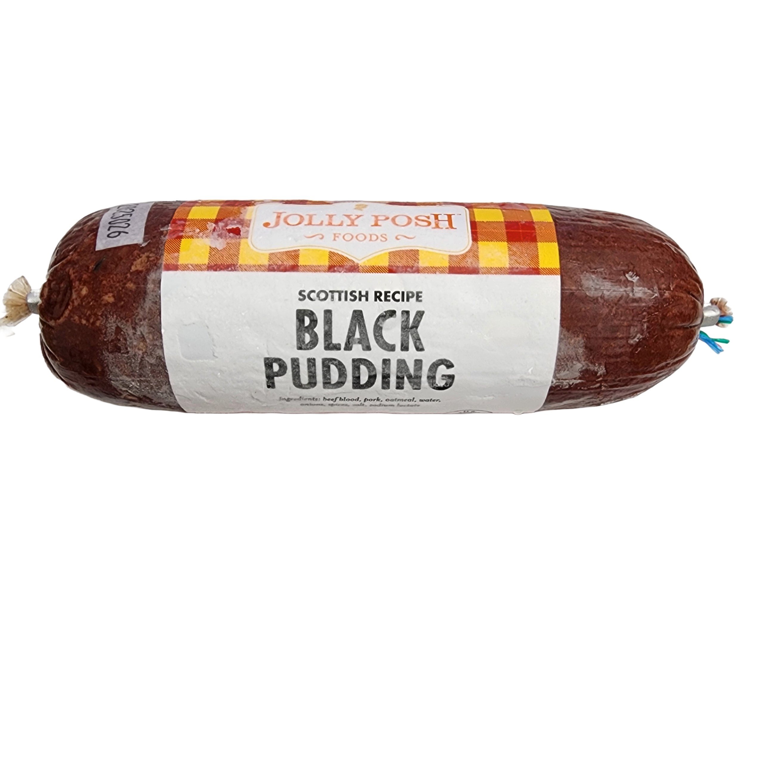 This is a robust Scottish-style black pudding made with steel-cut oats, and is fully seasoned with herbs and spices including onions, coriander, allspice and pepper. It is fully flavoured and has a distinctive steel-cut oat texture, making this ideal for a Full Scottish Breakfast and other Scottish-inspired dishes.