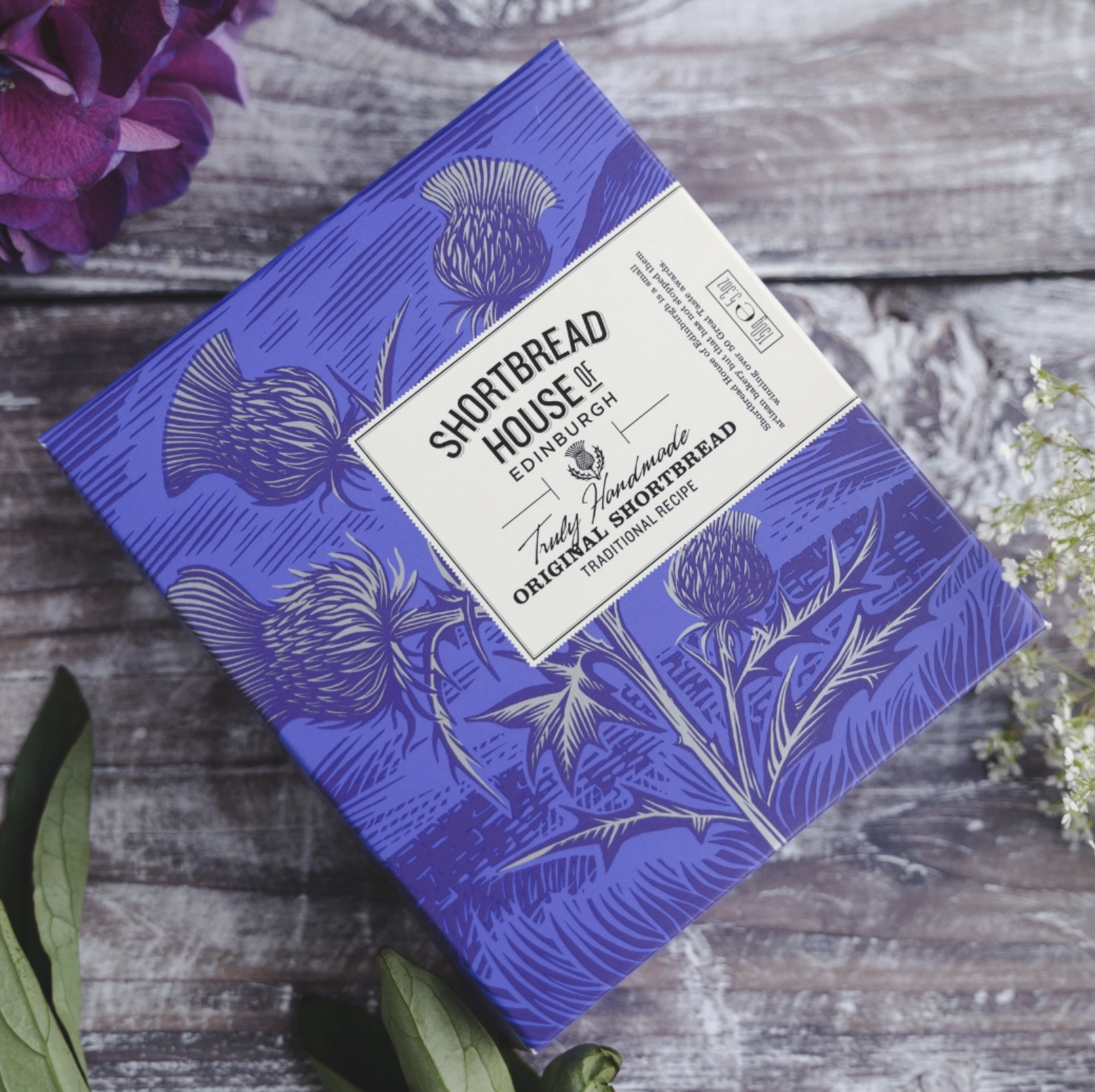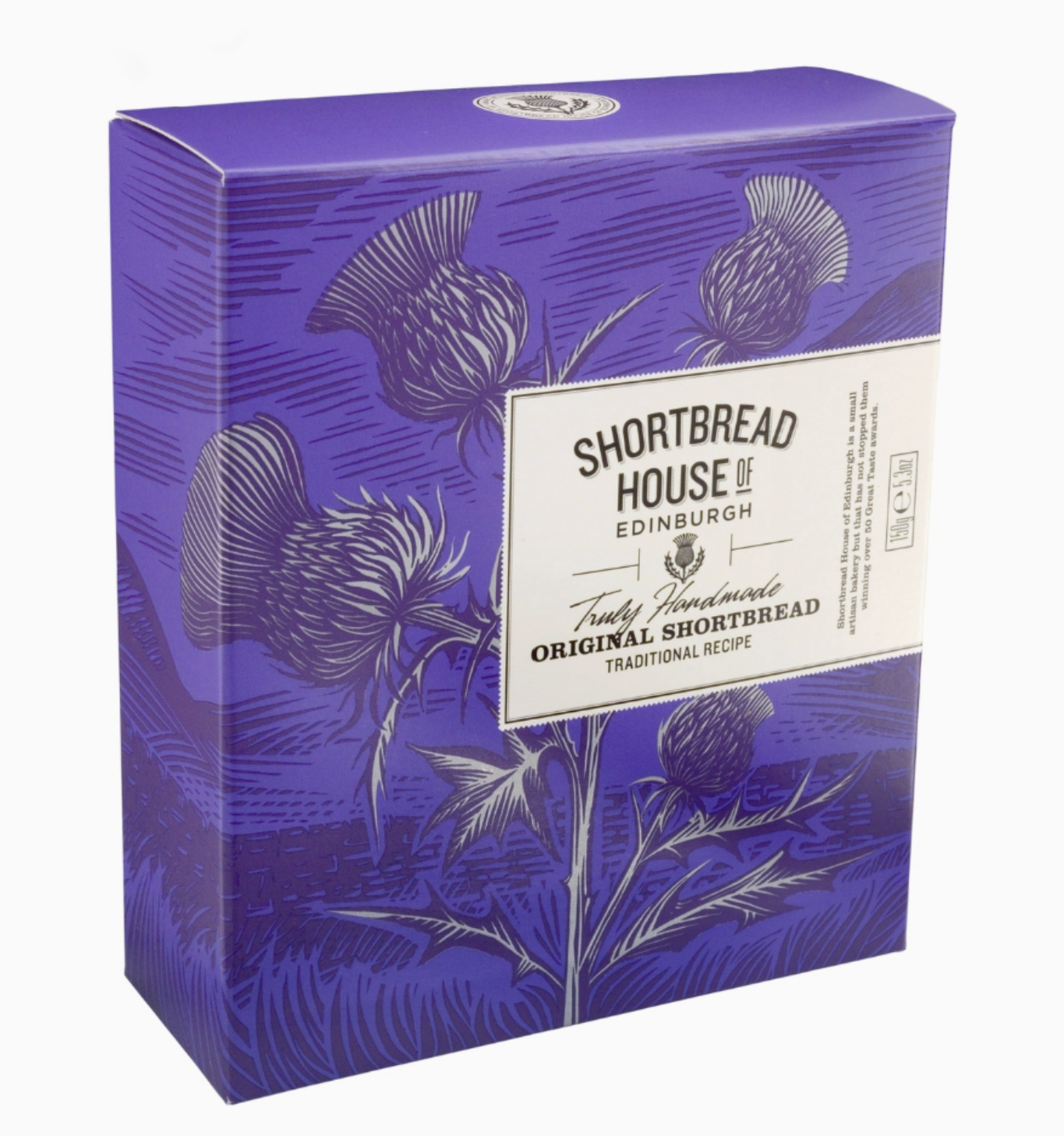 These stunning boxes feature Scotland’s national flower, the thistle. Each box contains approximately 16 mini shortbread biscuits. Taking even more care and time than with the larger biscuits, these “minis” are individually cut by hand using very small metal cutters, producing bite-sized biscuits that are compulsively delicious. Our original recipe shortbread biscuits were winners of 2* Great Taste Awards in 2024 and 2023, and 1* Great Taste Awards in 2022, 2021, and 2020