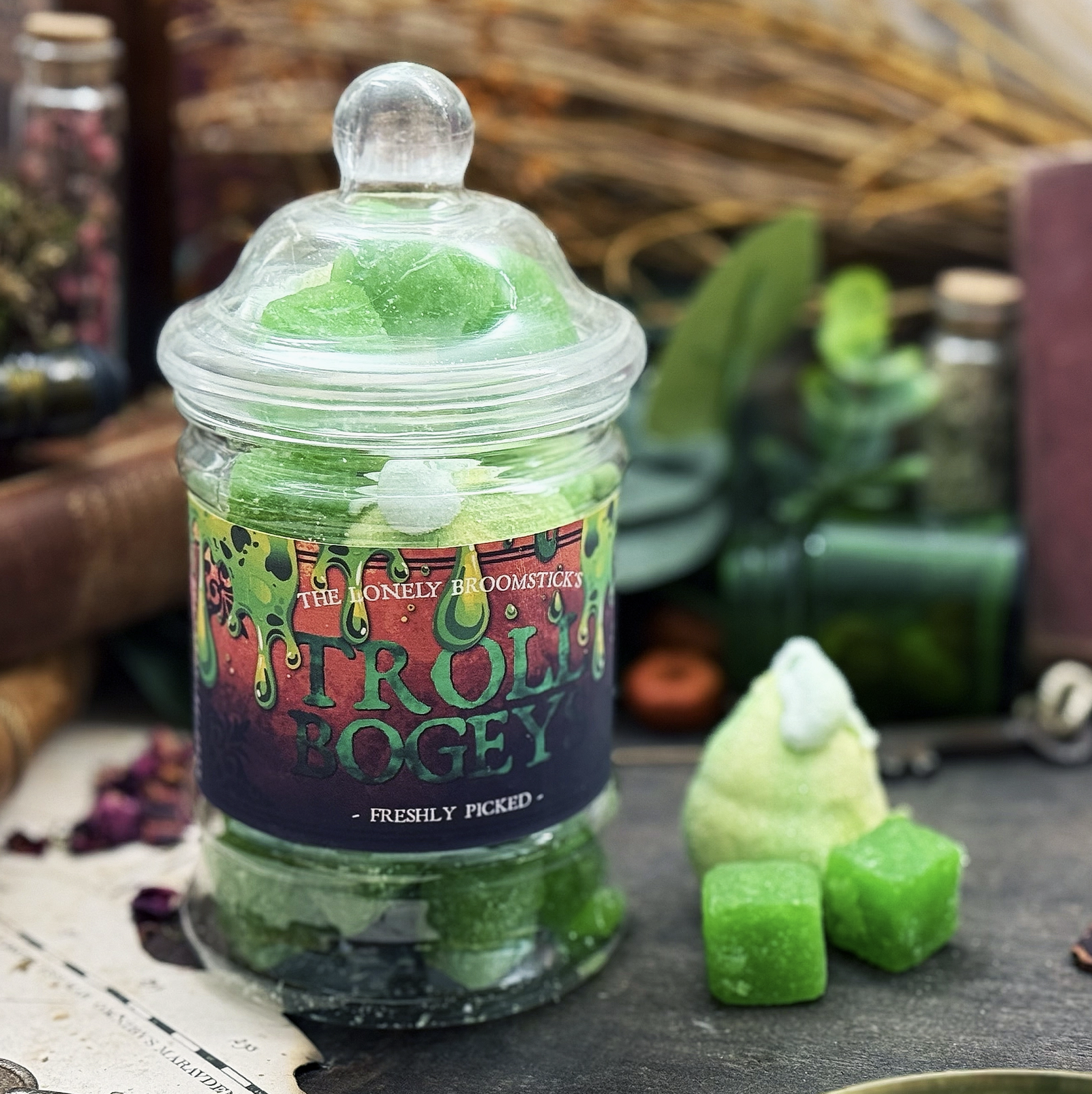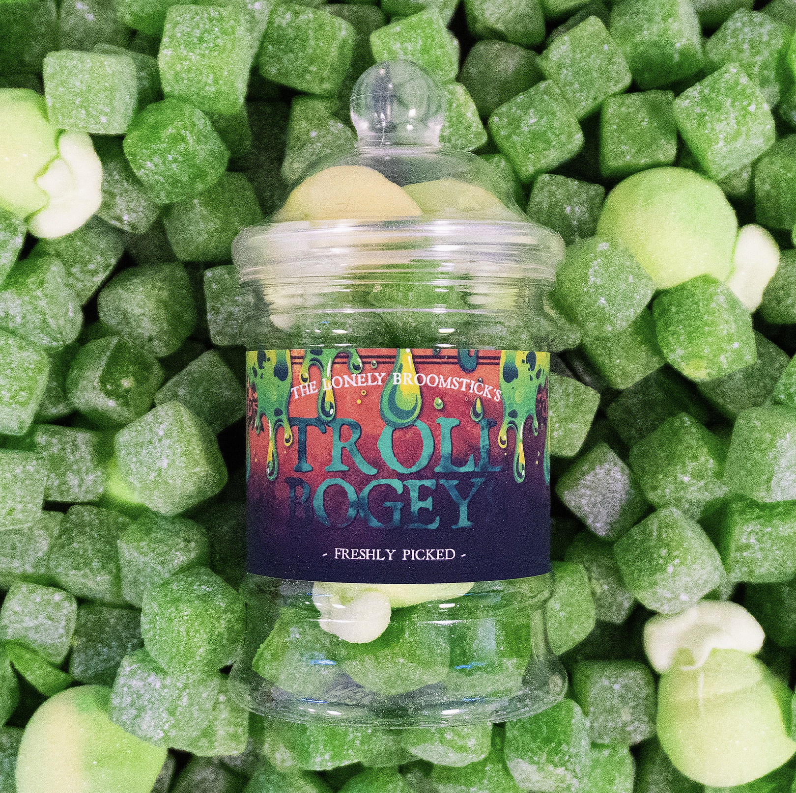 Magical Treats from The Lonely Broomstick Every enchanting product from The Lonely Broomstick is carefully crafted by the talented elves at one of Scotland’s most magical shops. A Delightfully Disgusting Treat Disgustingly delicious, these Troll Bogeys are freshly picked and ready to be eaten! Each jar contains a perfect pair of crunchy sour apple-flavoured cubes and soft, slimy apple marshmallows. A treat that’s as fun as it is delicious! Why You’ll Love It Deliciously apple-flavoured – a blend of sour crunch and sweet, soft marshmallow. Displayed in a vintage-style sweet jar – perfect for gifting or displaying. Created with care by the witches and wizards at The Lonely Broomstick.