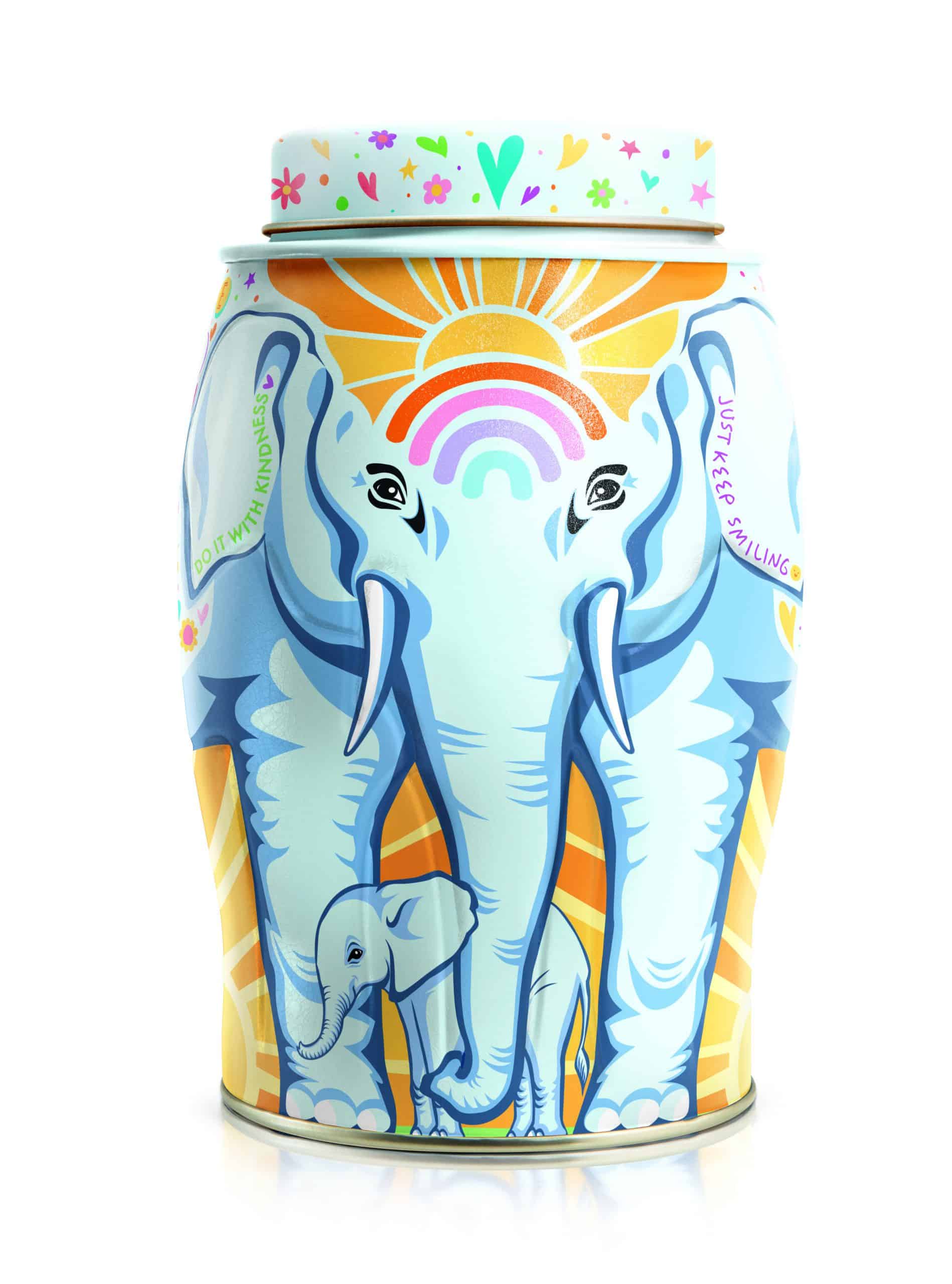 Happiness is a good cup of tea and our new elephant with her crown of sunshine and uplifting messages of fun, kindness and love brings happiness to all.
